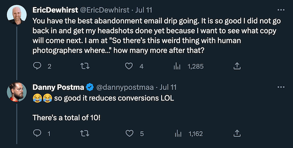 In yesterday's email I told you I'd tell you more about the Danny Postma case study... From DM to Paid in 60 Minutes. If you haven't read yesterday's email or the case study... Look through your inbox, they're both in there. Anyway... The cart abandonment