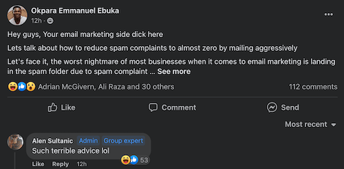 Tried to value-poast in a FB group and got roasted by the group owner, an internet marketing legend