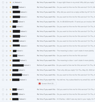 All these replies were from people who didn't understand plain English or thought I was hiring.